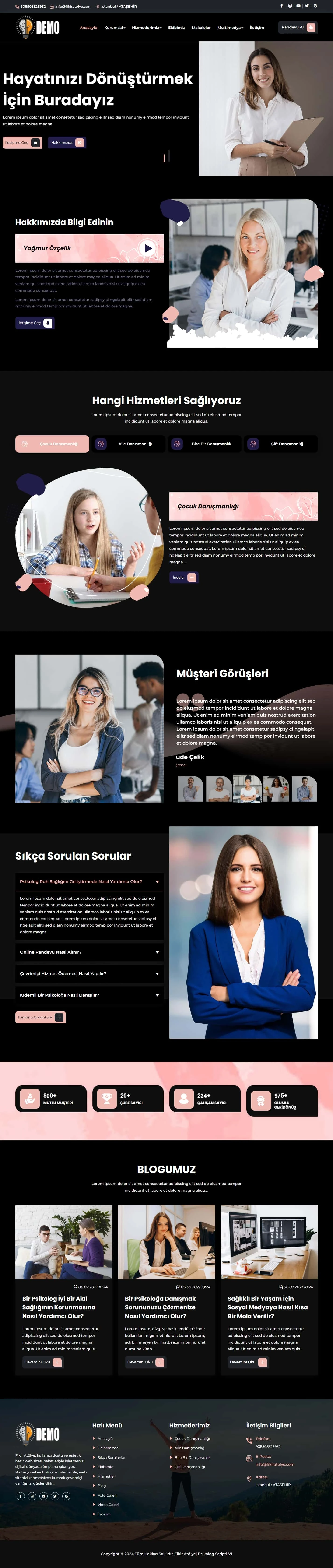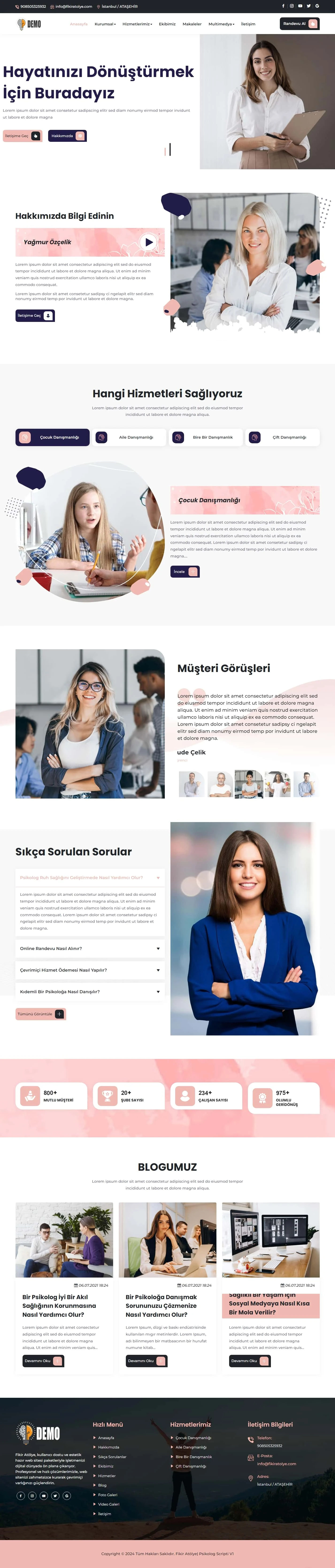 - Kullanıcı Dostu Tasarım: Modern ve şık tasarımı sayesinde, danışanlarınız web sitenizi kolayca gezinebilir ve ihtiyaç duydukları bilgilere hızla ulaşabilir.